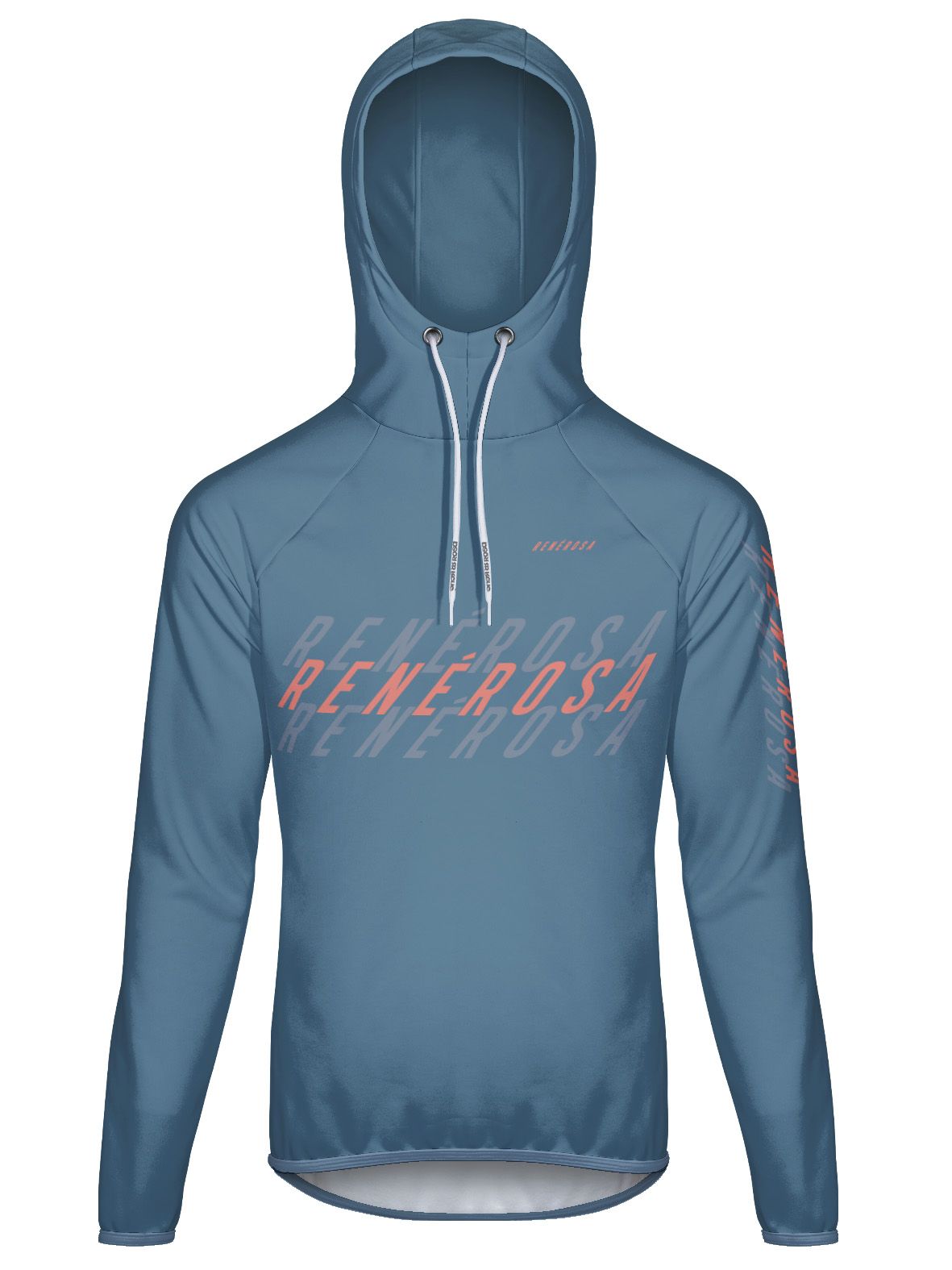 Angenehm zu tragender Kapuzenpulli mit sehr hohem Tragekomfort in Neo Denim-Blau mit RenéRosa Schriftzug.